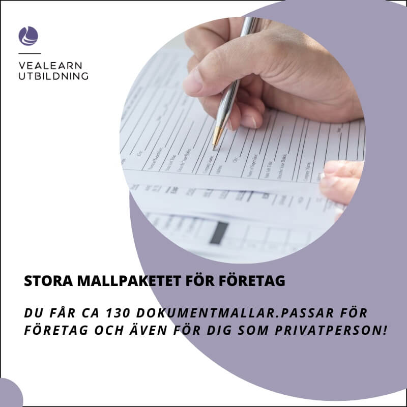 Stora Mallpaketet för företag som för privat ger dig tillgång till inte mindre än ca 130 dokumentmallar! Det här stora mallpaketet innehåller mallar för snart sagt alla de dokument ett företag kan behöva upprätta. Stora mallpaketet utökas löpande utifrån kundernas önskemål. Paketet innehåller fler än 130 mallar i kategorierna Bolag & föreningar, Budget, Familjejuridik, Fastighet, Köp & försäljning samt Personal.